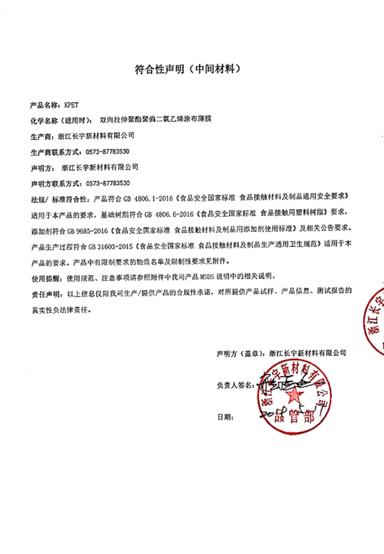 Créée en avril 2000, Zhejiang Changyu New Materials Co., Ltd., est un fabricant professionnel de films métallisés à haute barrière, un film revêtu, un film alox en Chine. Nous gardons une coopération stable avec des entreprises célèbres comme Amcor, Bemis, Zijiang.